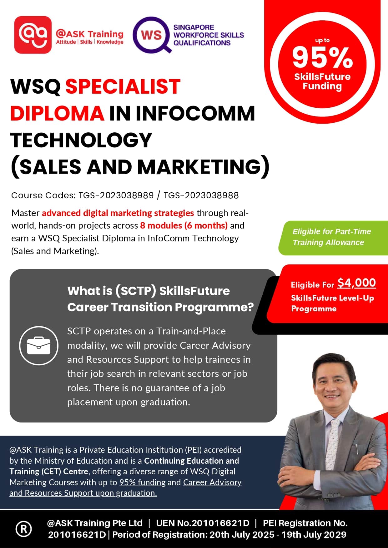 Tip: All our SCTP courses listed on the @ASK Training website are also PT TA-eligible. You can also find them on the MySkillsFuture portal by searching for our course titles or UEN.
