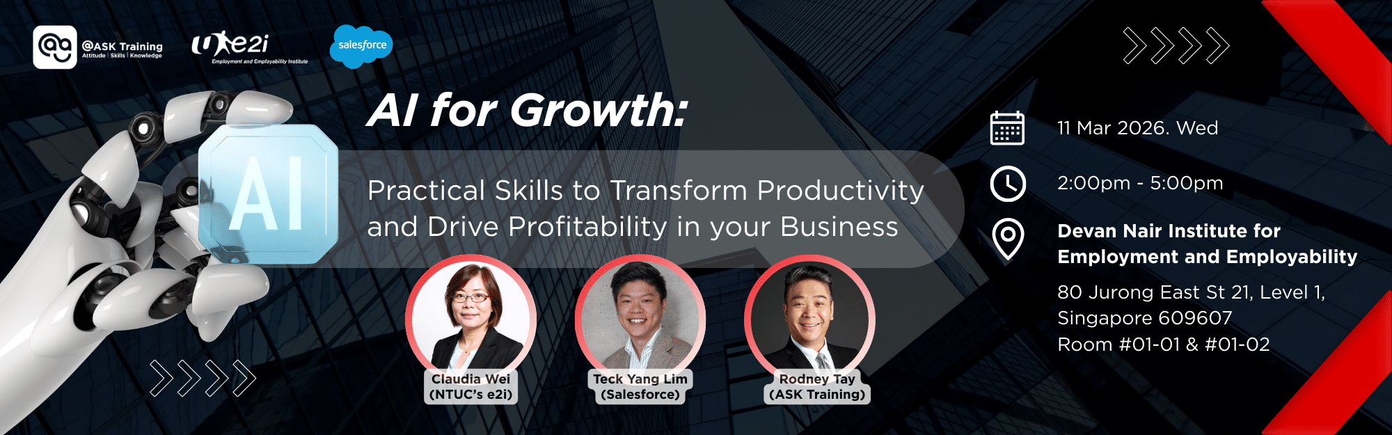 - 3:30pm – GenAI for Everyday Work: Practical Skills to Transform Productivity Across Business Functions — Rodney Tay, Trainer, Behavioural Intelligence, Leadership Guide & Mentor, Counsellor, @ASK Training