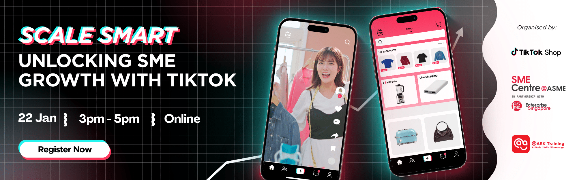 @ASK Training is partnering with SME Centre@ASME and TikTok Shop to present an exclusive joint webinar designed to empower SMEs with the latest insights on social commerce success. This session will unpack key strategies for driving revenue through TikTok Shop, share real-world best practices, and highlight how businesses can future-proof their digital capabilities.